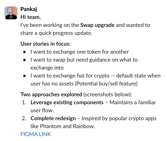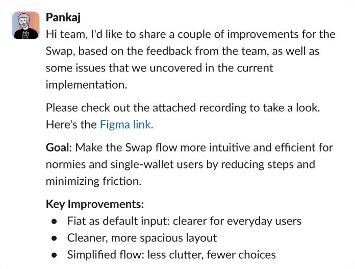 I led the end-to-end redesign of Bitcoin.com’s trading feature; an outdated, yet vital part of the app. With a short brief from the CEO and no formal PRD, I conducted research, designed new flows, ran usability tests, and iterated quickly through async feedback, ensuring transparency and momentum throughout the project.